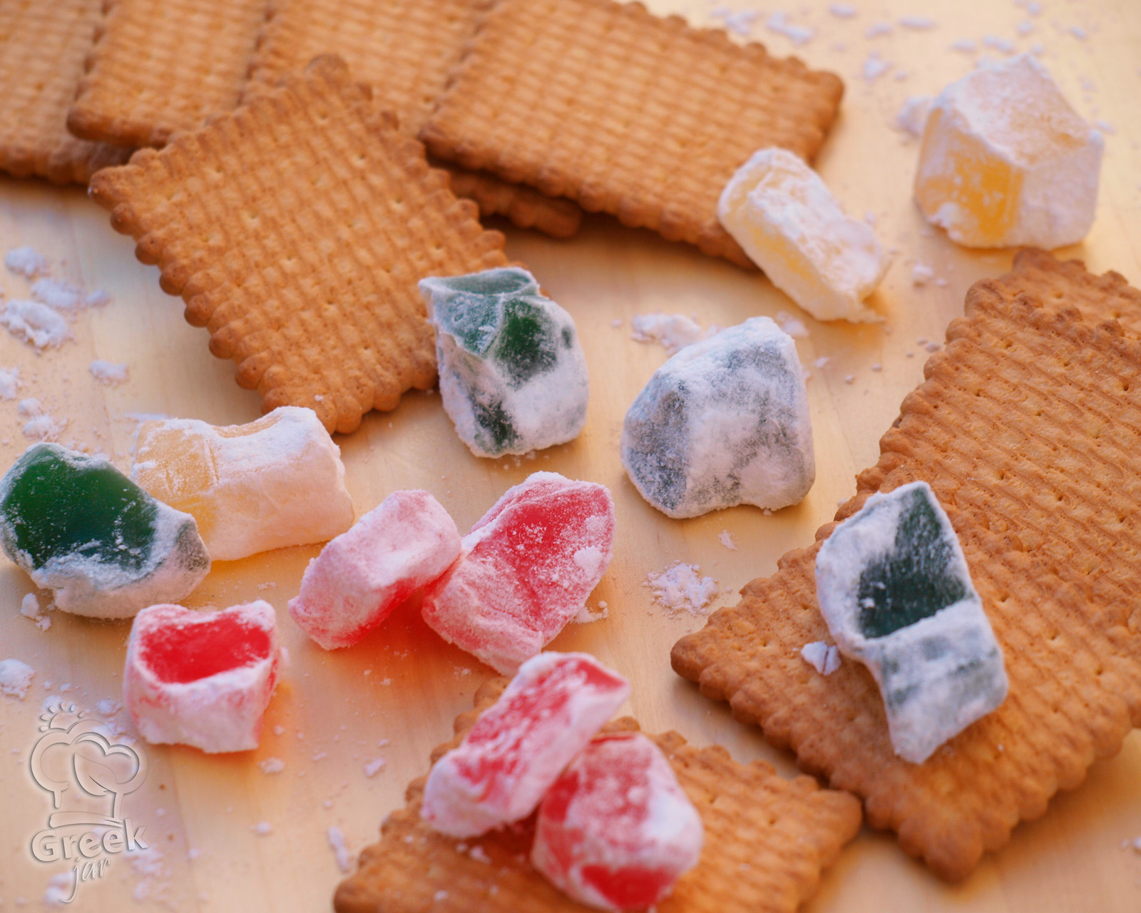 Φτιαγμένο με αγάπη και απλότητα, δυο μπισκότα πτι-μπερ αγκαλιάζουν προσεκτικά ένα κομμάτι λουκούμι, σαν μικρό σάντουιτς, που πιέζεται απαλά, ενώνοντας το τραγανό με το μαστιχωτό σε μια γεύση που ξυπνάει μνήμες και χαμόγελα. Είναι η “ιεροτελεστία” που έφερνε κοντά μικρούς και μεγάλους γύρω από το τραπέζι και γέμιζε το σπίτι με τη μυρωδιά των λουκουμιών. Τριαντάφυλλο, μαστίχα, περγαμόντο...
